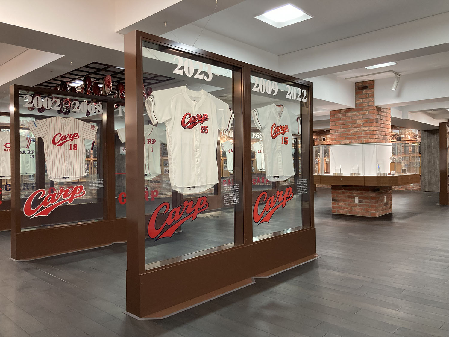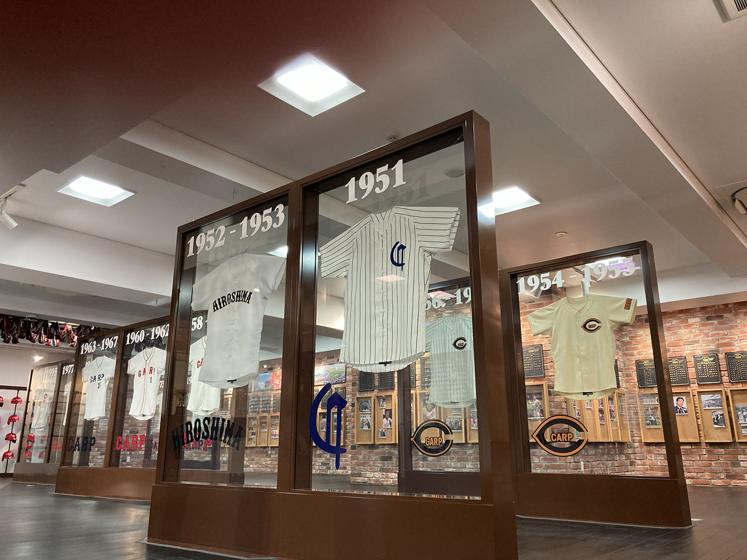 球団創設の1950年から2025年までの広島東洋カープ球団の歴史を展示しております。往年の選手が使用していた道具や、記録達成、優勝を記念したトロフィーの展示もあり、カープの歴史が詰まったギャラリーとなっております。皆様お誘い合わせの上、ぜひお立ち寄りください。