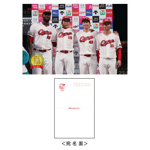 9/3(水)DeNA戦のヒーロー、森浦大輔選手と栗林良吏選手と島内颯太郎選手とハーン選手のポストカードです。