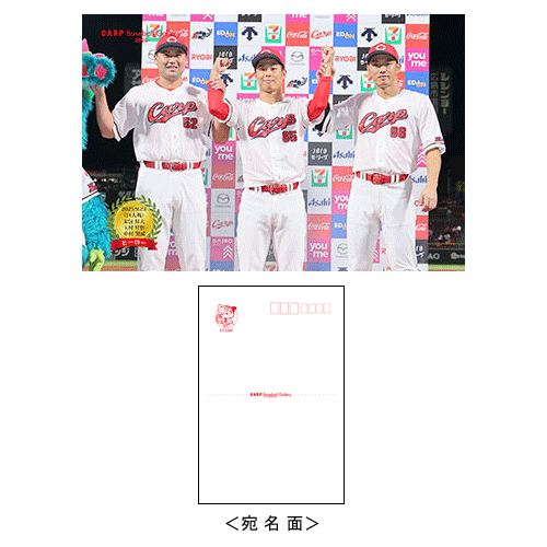 9/23(火・祝)対巨人戦のヒーロー、末包昇大選手、玉村昇悟選手、中村奨成選手のポストカードです。